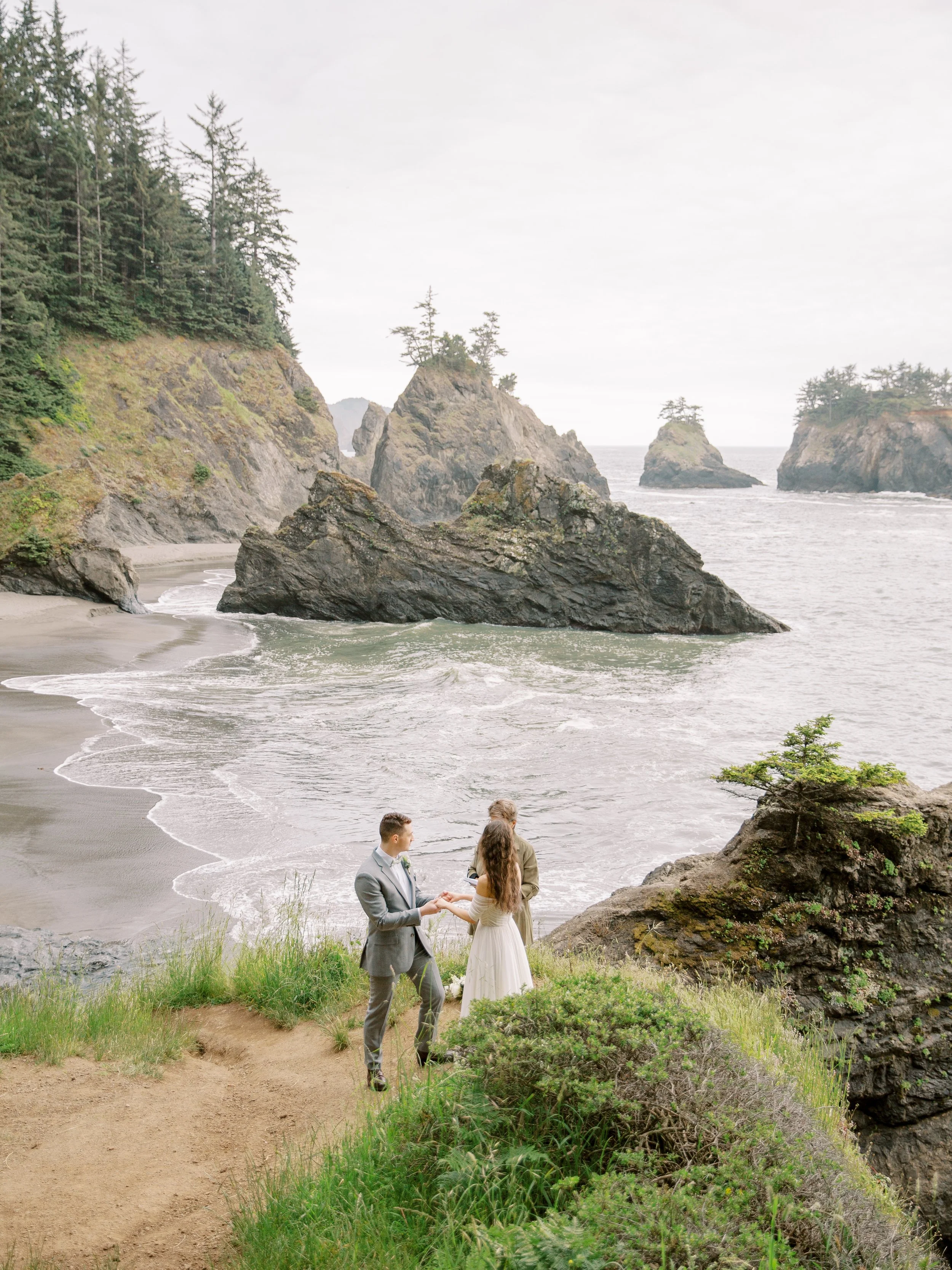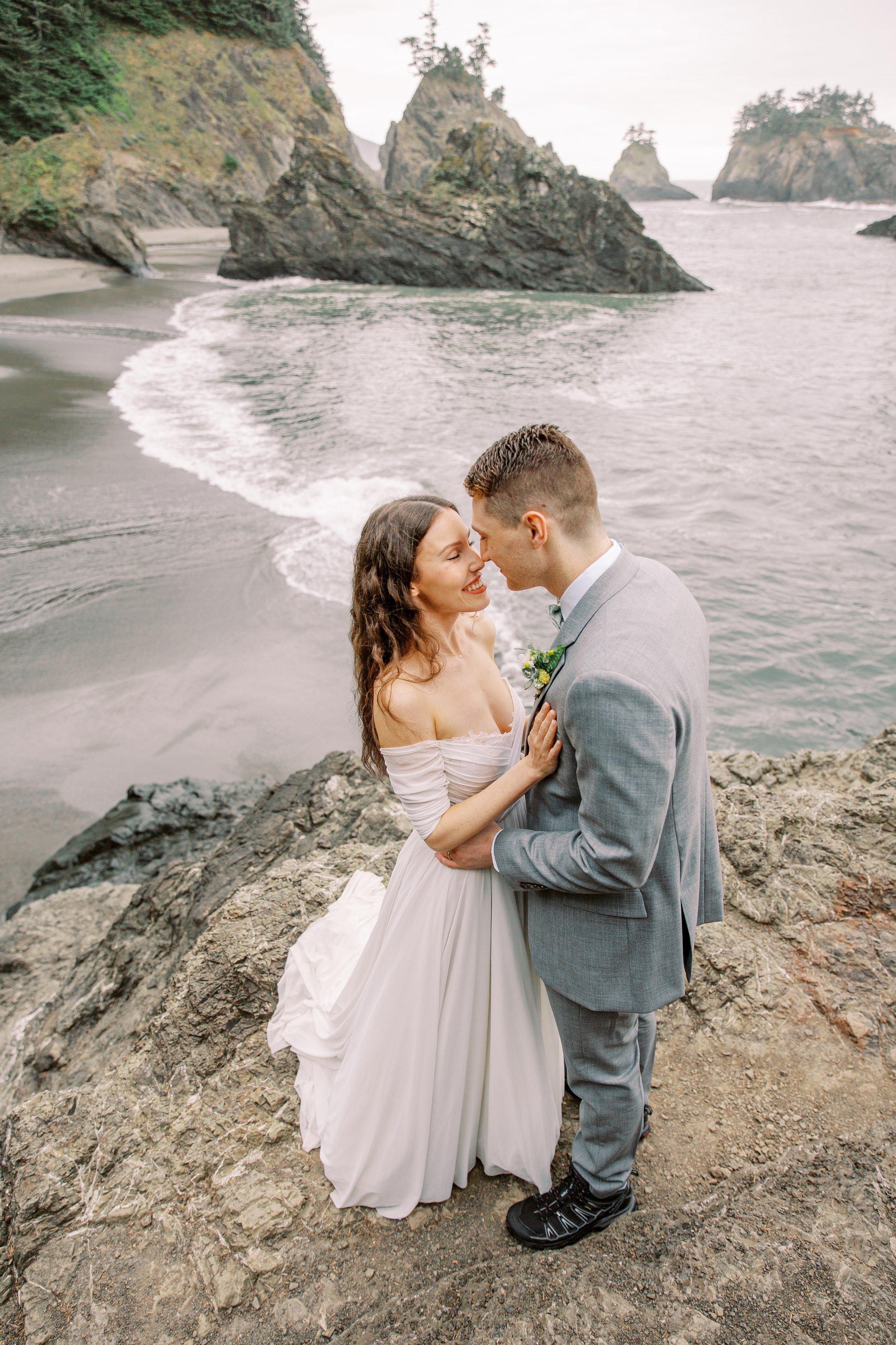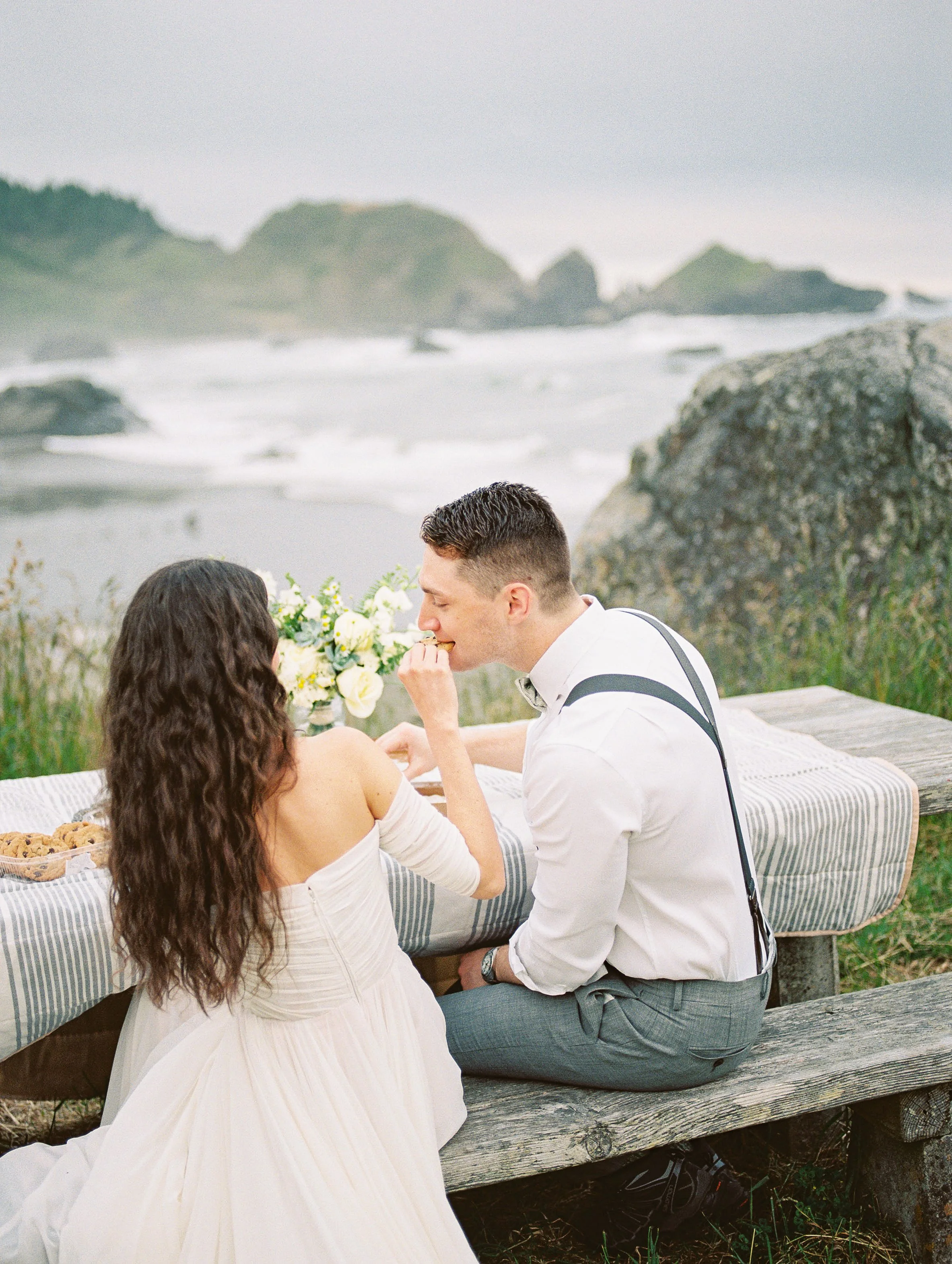 Then it was off to hike to Secret Beach which is a short easy level hike. It can be quite steep but you can take it slow if needed and watch carefully for mud. They had a sweet ceremony with vows from their vow books, couples wedding portraits, and then headed off to Lone Ranch Beach (Still on the Southern Oregon Coast / Brookings, Oregon just 5 minutes or so from the first location) for a mini picnic and to wrap up the day.