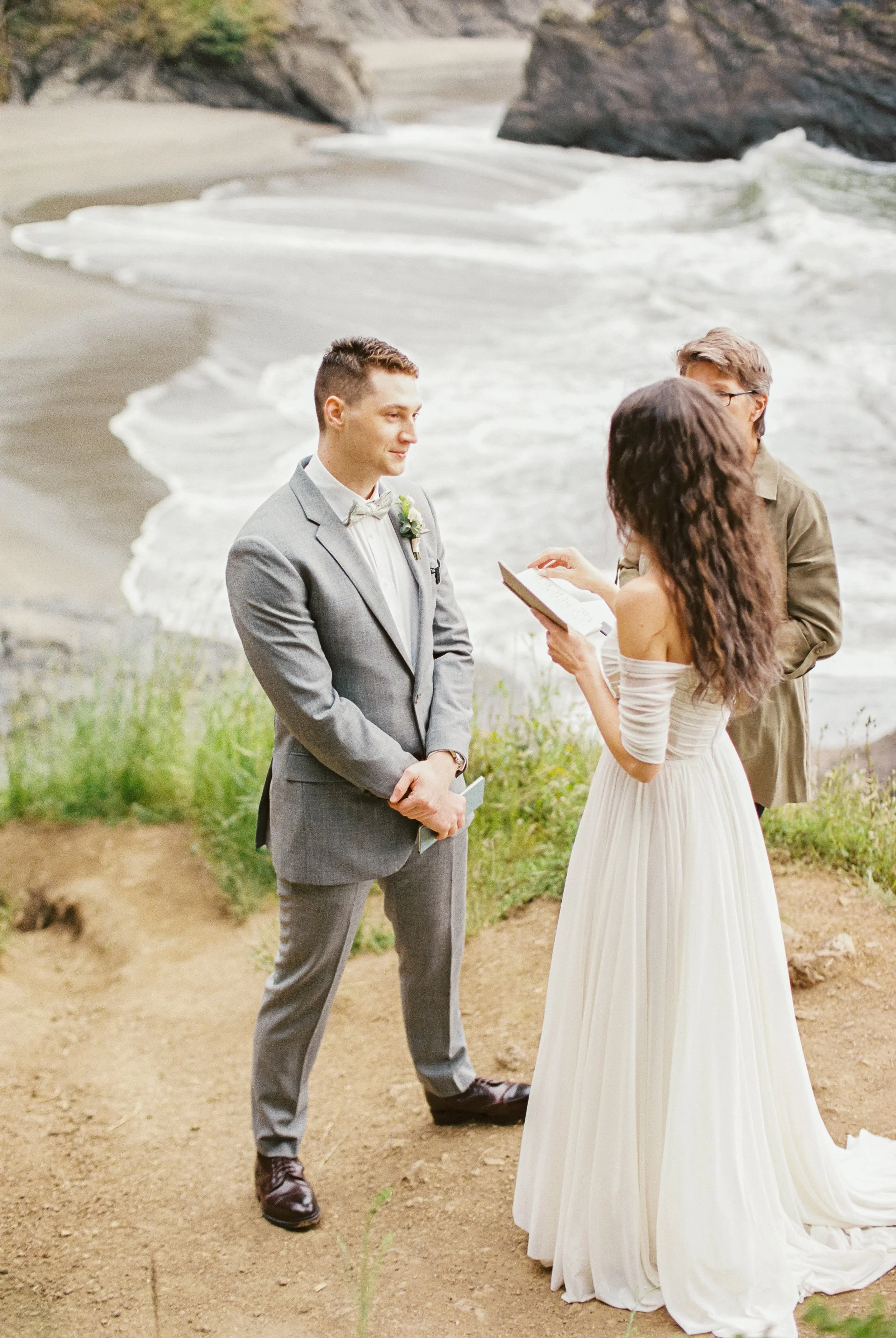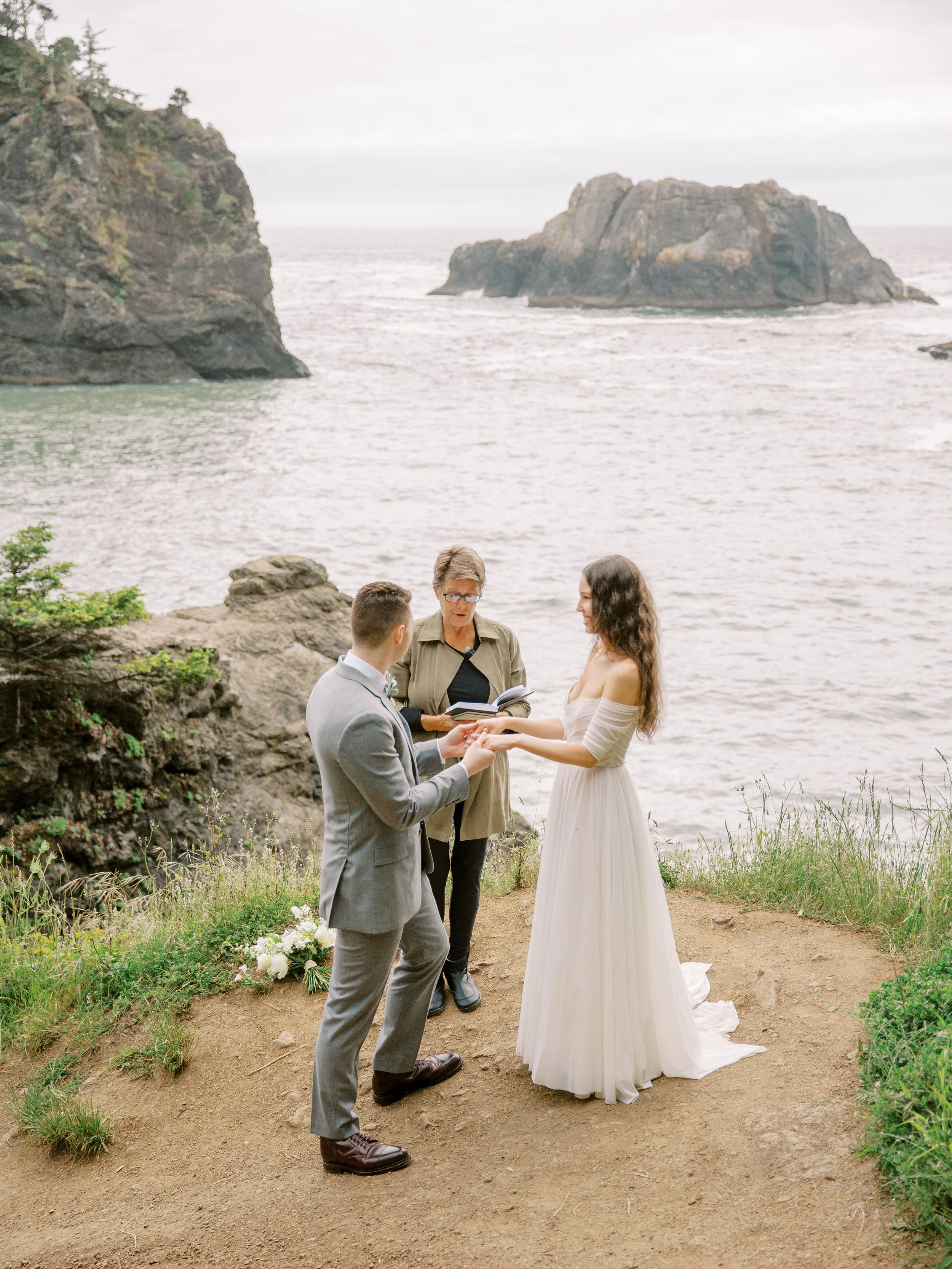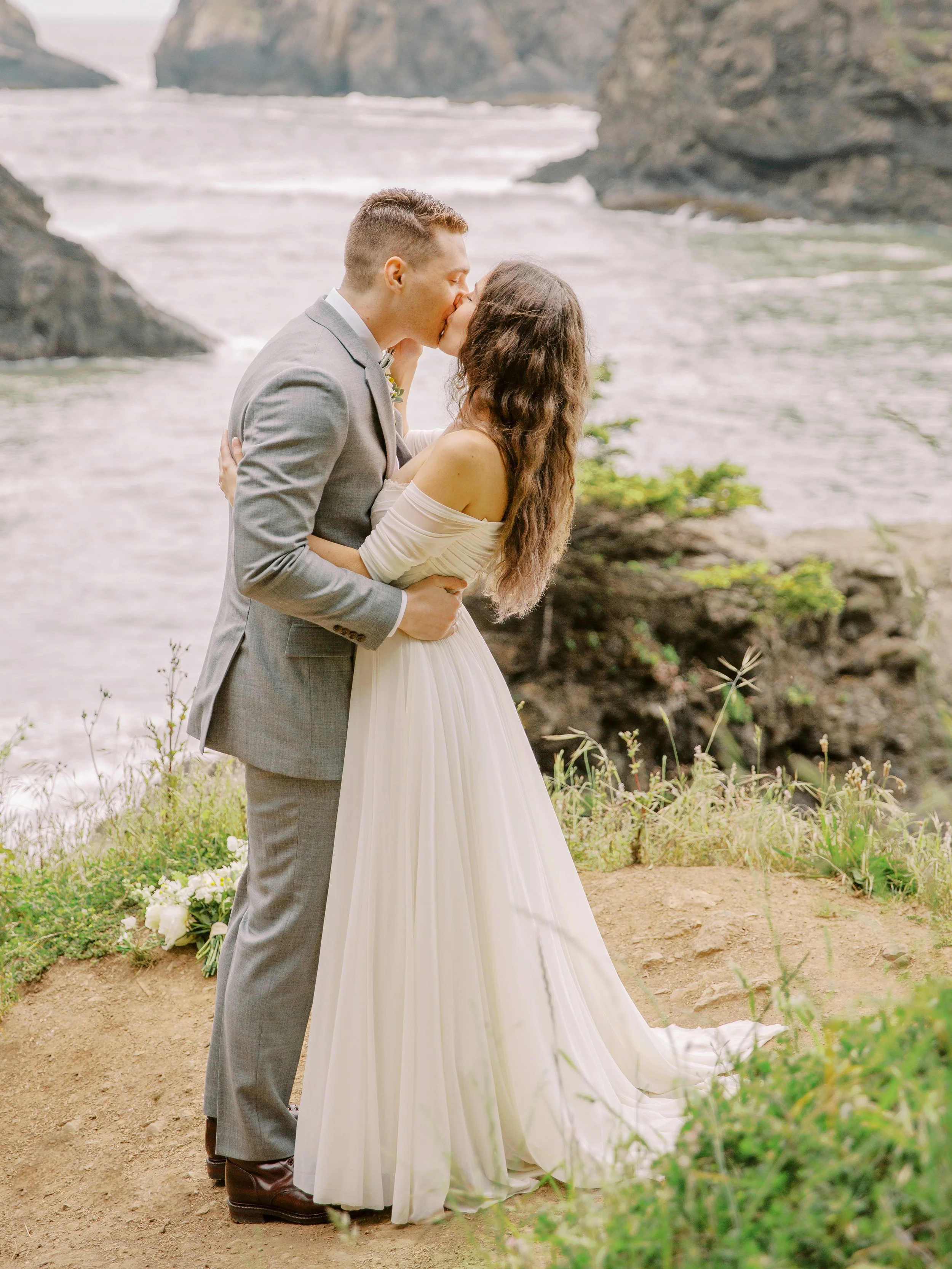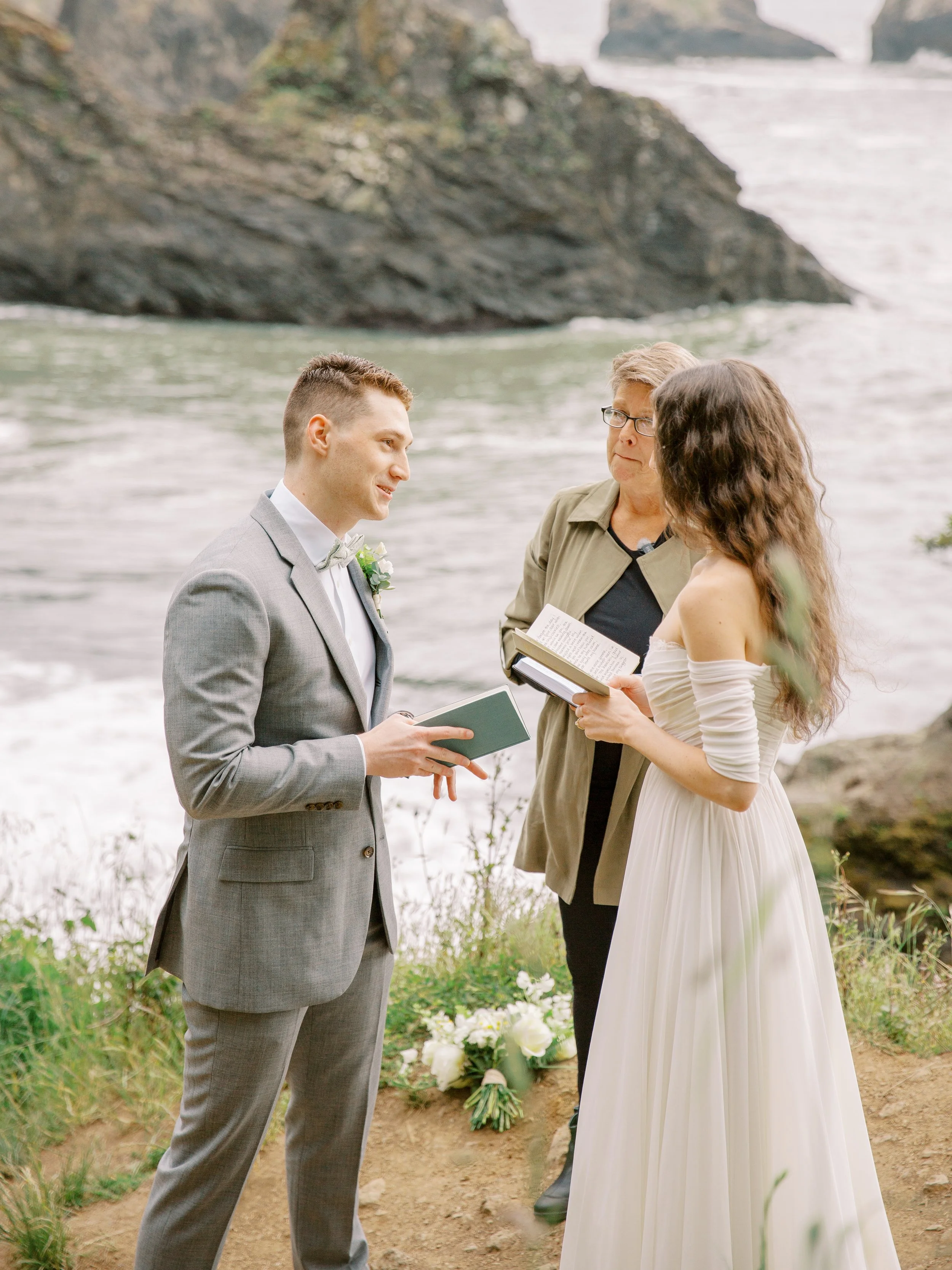Then it was off to hike to Secret Beach which is a short easy level hike. It can be quite steep but you can take it slow if needed and watch carefully for mud. They had a sweet ceremony with vows from their vow books, couples wedding portraits, and then headed off to Lone Ranch Beach (Still on the Southern Oregon Coast / Brookings, Oregon just 5 minutes or so from the first location) for a mini picnic and to wrap up the day.