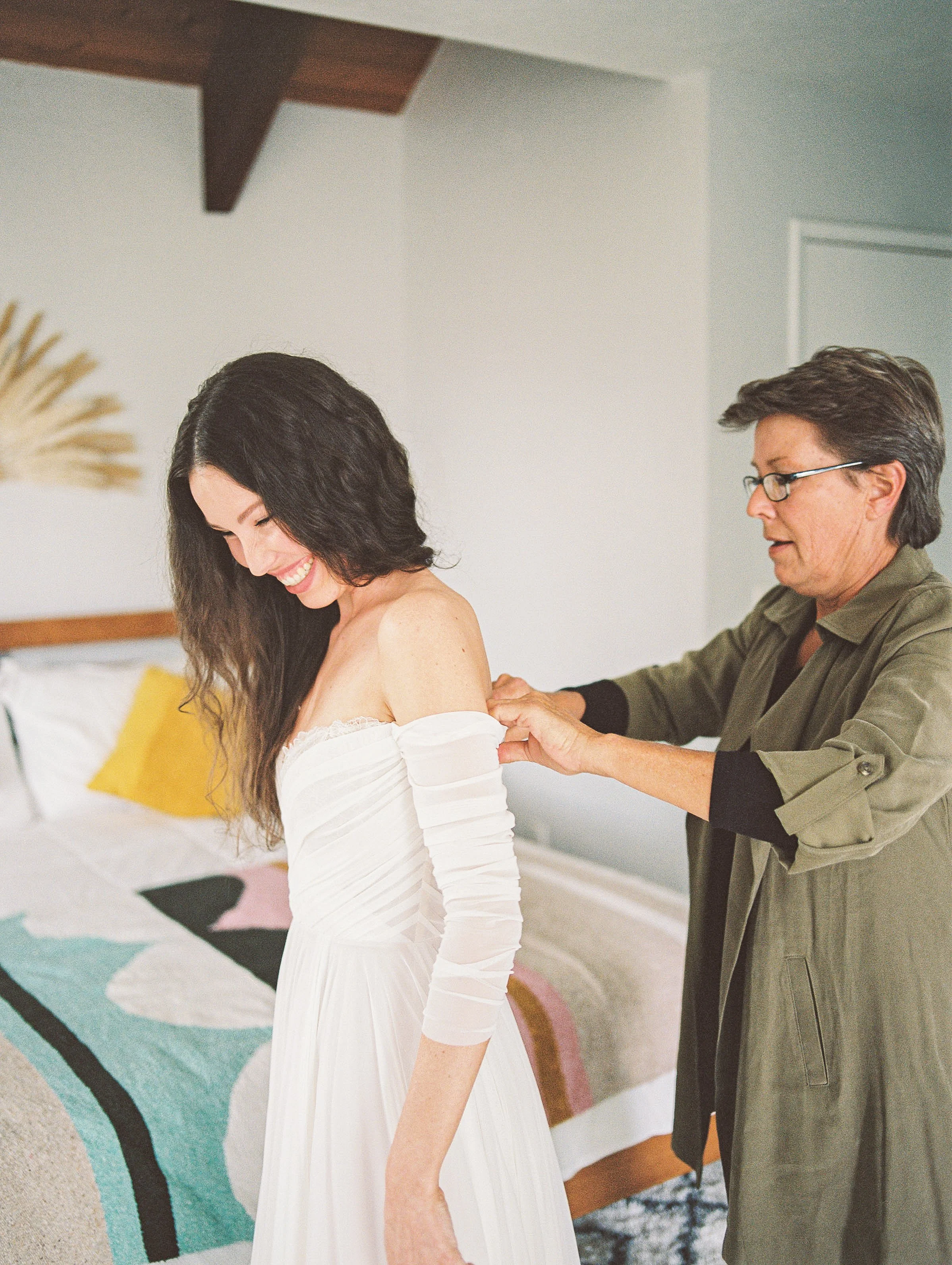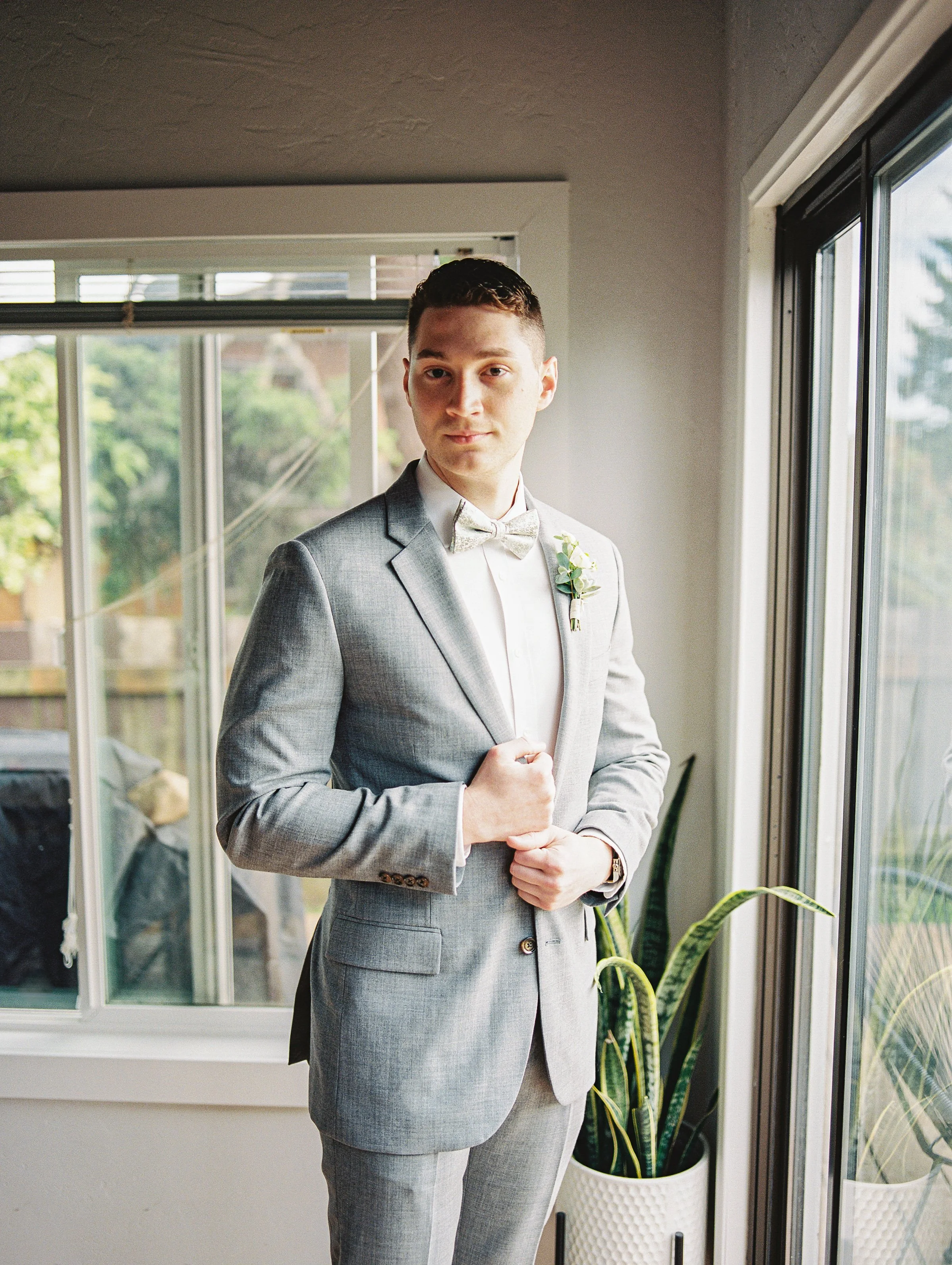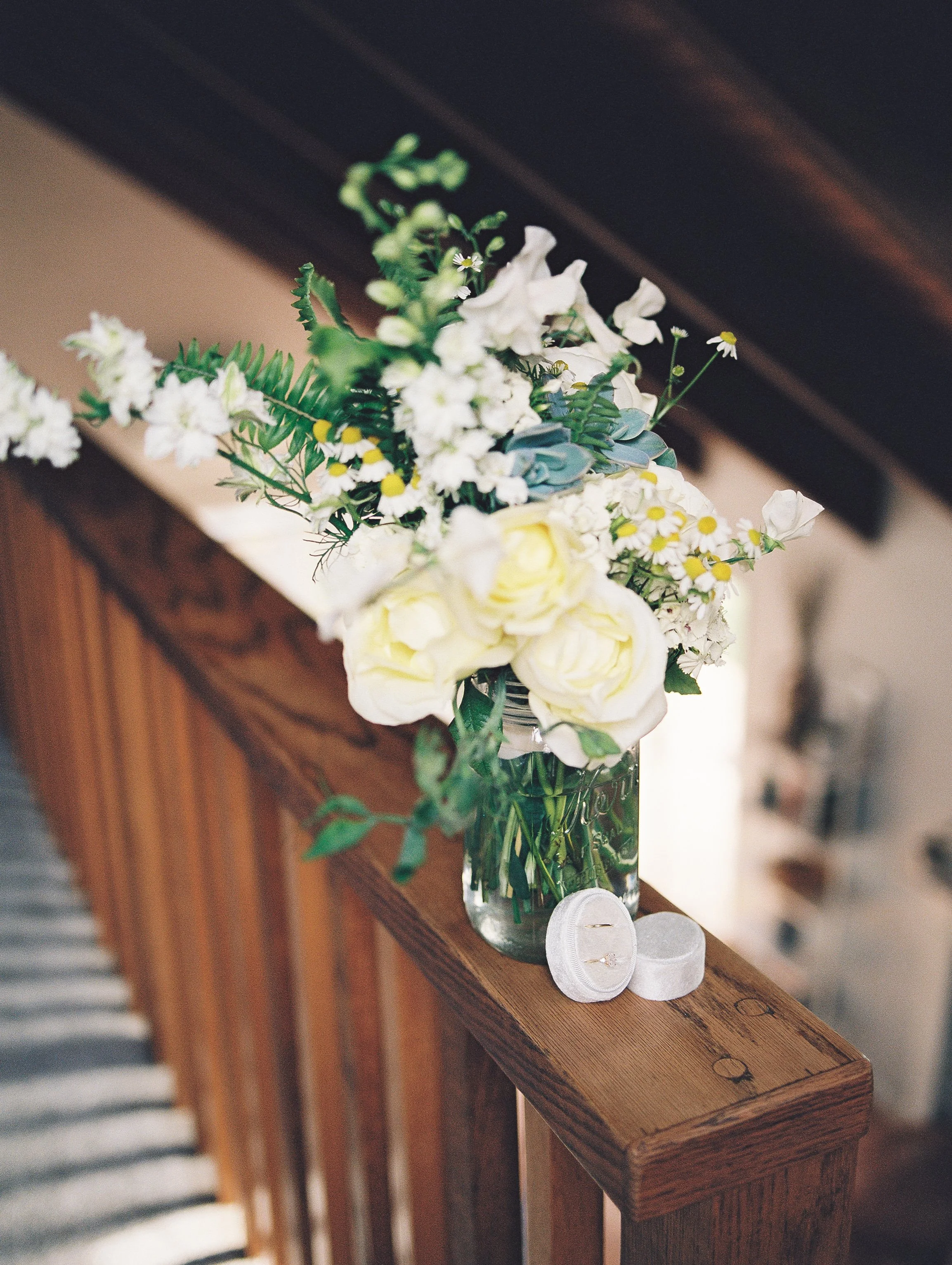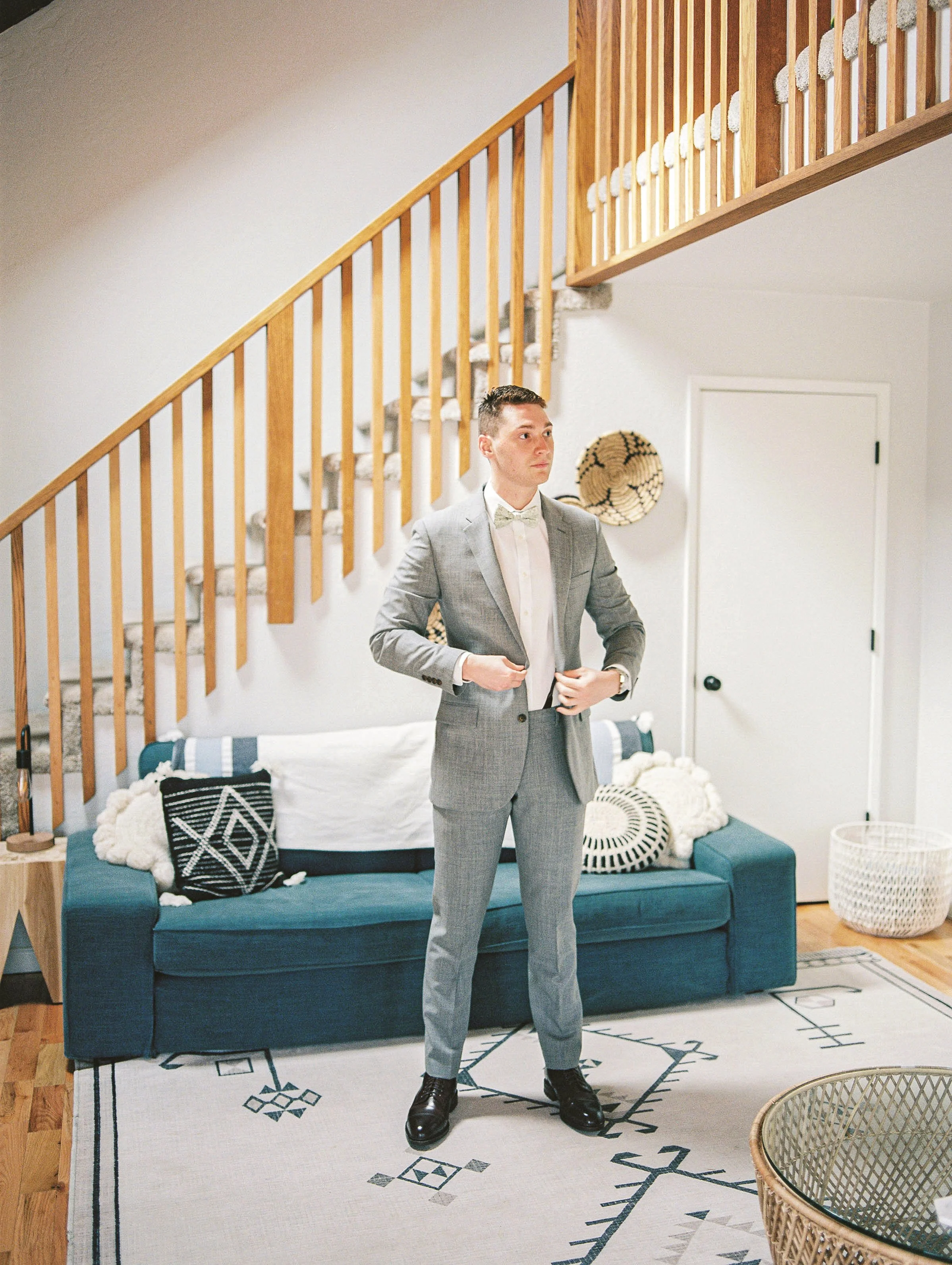Katy and Nolan had a beautiful elopement wedding day in Brookings, Oregon. The weather was mild with a mixture of the sun peaking through and soft billowy clouds (As can be typical for the Oregon Coast even in the summer!). We started off the day with getting ready in a beautiful private residence airbnb with a majestic staircase for the first look. Their getting ready location is still a beloved highly reviewed Airbnb at 4.95 stars. You can find the link here: Harris Beach Bungalow
